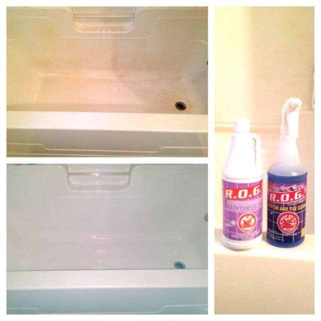 ROG3  ™ SHOWER CLEANER REALLY WORKS !!! JUST LOOK ON PINTEREST FOR CUSTOMER REVIEWS OR AT CUSTOMER BEFORE AND AFTER PICS  AND TESTIMONIALS WE CLAIM TO HAVE THE BEST BATHTUB CLEANER EVER MADE That’s A NON ACID PRODUCT,